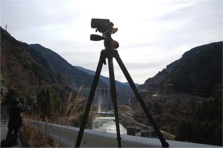 車を左岸駐車場に止めたので折りたたみ椅子と三脚とカメラなどの資材を担いで右岸に徒歩移動。