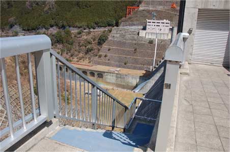 でも当日はまず堤体の下流面に設置されている外部桟橋から