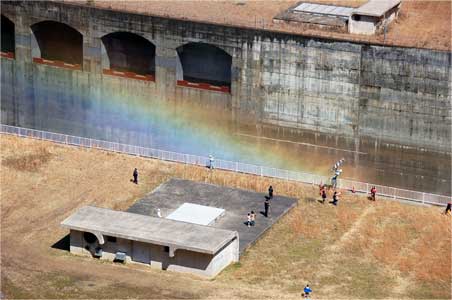 クレスト放流の水しぶきがこんなに素敵な虹をかけてくれています。