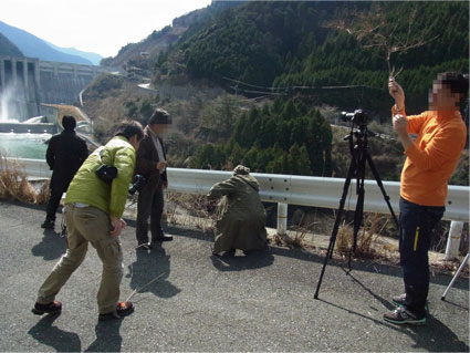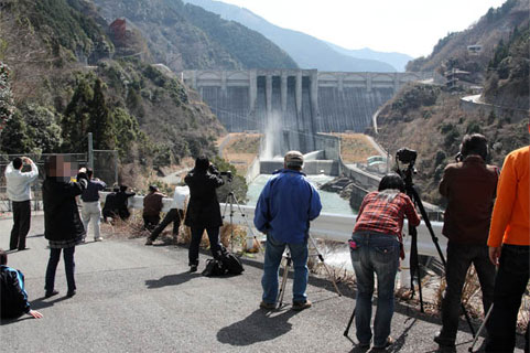 30日のクレストゲート試験を右岸の真向ポイントで待つ人々の写真!!