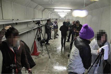 左岸駐車場にマニアが集まっている様子が見えました。