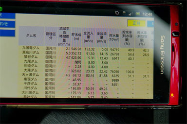 ダムマニアなら川の防災情報で現地でリアルタイムダム貯水位チェックは御約束。
