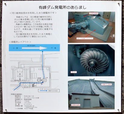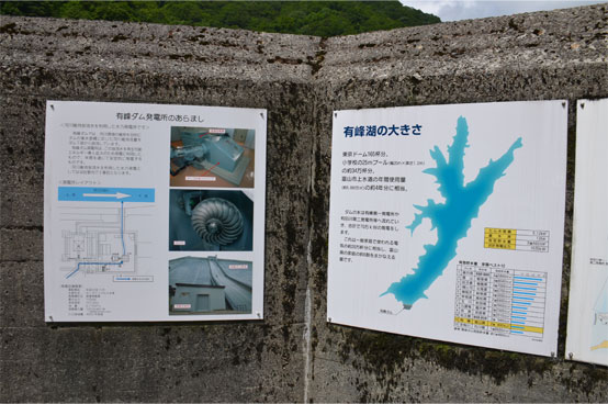 有峰ダム直下の河川維持放流水を利用して作られた有峰ダムPSの説明板です。