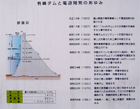 常願寺川有峰発電計画の概要も説明板でばっちり勉強できます。