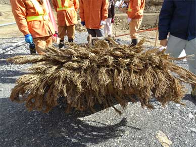 「藁か綱にみえますが、これ、鋼鉄のワイヤーですよね」
