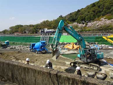 “川底の掘り下げを行っています”