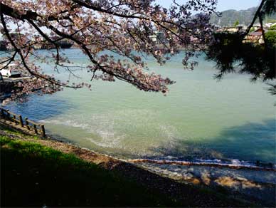 その激流の宇治川でも桜の木の下には