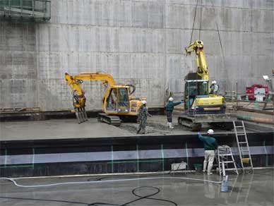 そちらを強固にすべきですが新設洪水吐の水路と新設減勢工の壁は