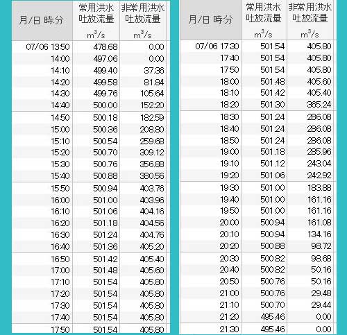 7月6日の14:00にクレストゲートの操作を開始し7月6日の21:20に閉めています。