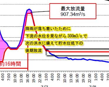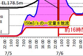“30分で30cmの河川水位上昇”を踏まえて放流量を増加し
