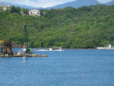 遊覧船が近くを通るのでゆっくり作業をされていたのかもしれません。