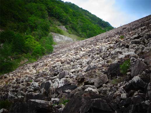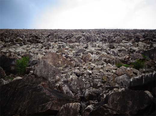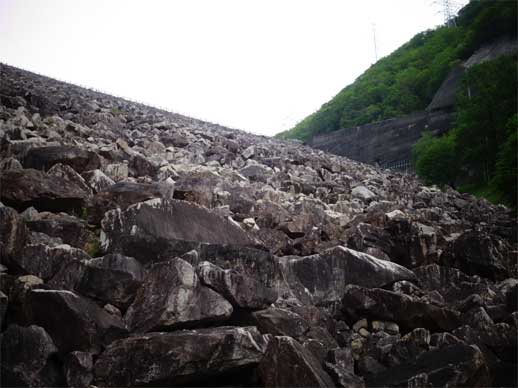 成形リップラップが今の主流になっているロックフィルダムから考えられないこの巨石