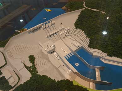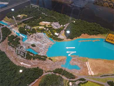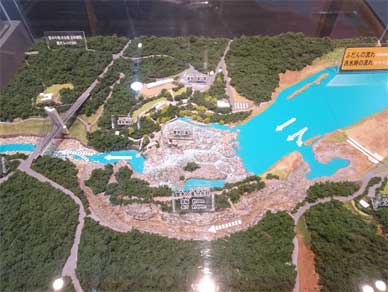 もう一つの大きな模型は鶴田ダムの上流にある曽木の滝分水路です。