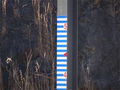 発電所取水堰越しに対岸を見てもさっぱりわからない。