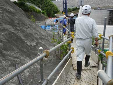堤体直下の現場です。