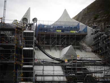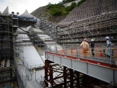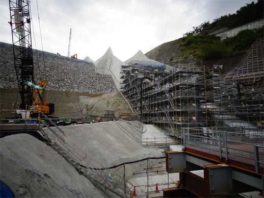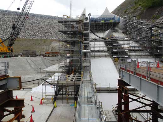 更に進んで洪水吐直下の構台に移動してきました。