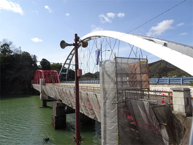 木曽川に架かる八百津橋と八百津歩道橋のたもとです。