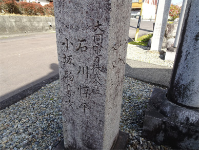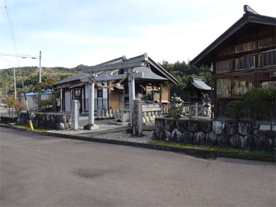 神社の横の倉庫のスレート壁に小さなプレートがありました。