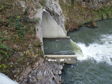 流水型ダムとして竣工したらこういう流れが堤体から出てくるわけです。