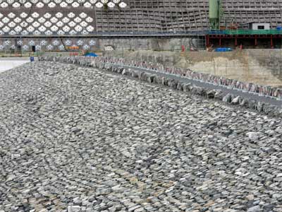 このリップラップが積み上げられ、整えられ、間詰めされるプロセスを