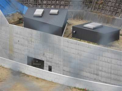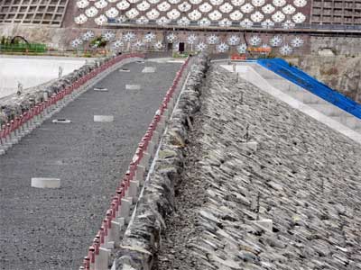 貯水池側は下流側とロック材の間詰めが違うのです。