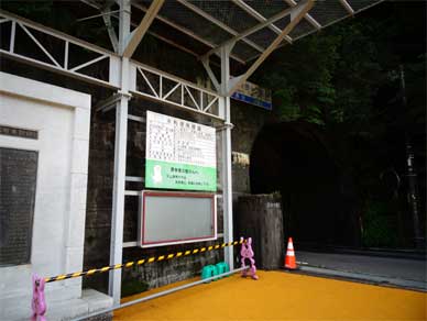 再開発でカットされた堤体の一部がモニュメント展示されていました。
