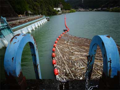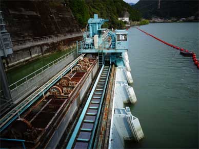 左岸側のこの長い長い15門の取水口から取り込まれた水は