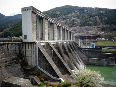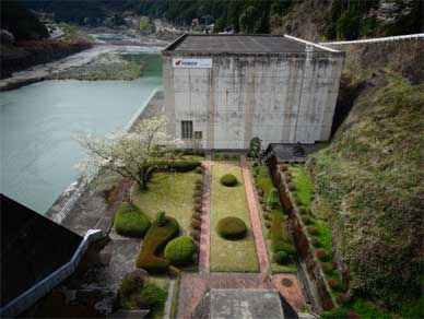 秋葉ダムは竣工当初、第一発電所と第二発電所を左右に構えていましたが