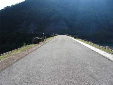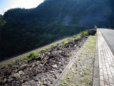 天端の右岸側にはでんぱつ様の管理道路が繋がっていますので