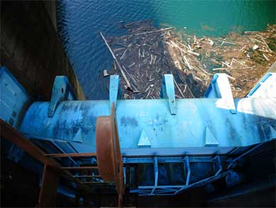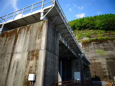 久木ダムの発電所制水門と同じロッカビーム式のローラーゲートでした。