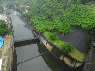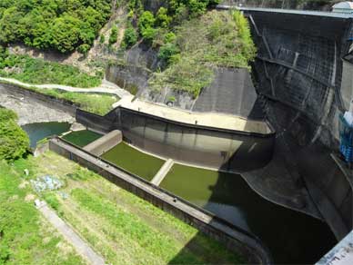 天端から下流側を見て、びっくりしました。