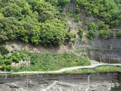 一番心配されているのは発電所から減勢工横までのこの区画の山肌。