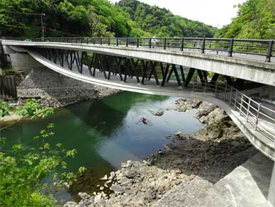 白虹橋の下には釣り人にカヌーの練習にハイキングと