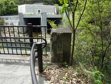 トンネル式洪水吐の正面に旧・白虹橋の親柱がちゃんと残されているのです。