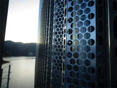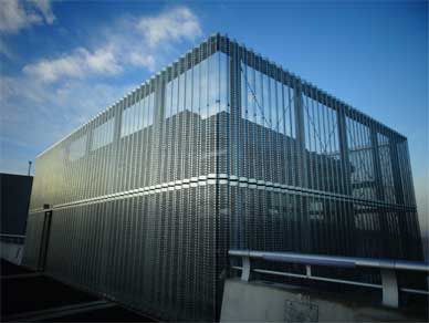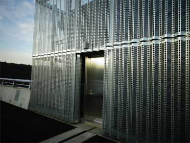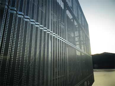 建屋の外壁をパンチングメタルで覆っているのです。