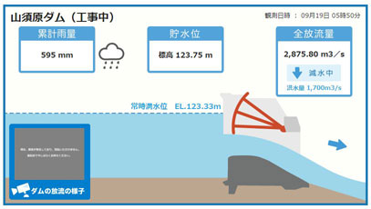 山須原ダムには最大で約4100m3/s(※洪水痕跡からの推定値)もの流入量があったのです。