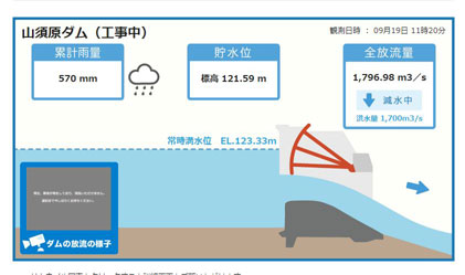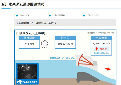 山須原ダムが改造工事を続ける中、一足先にT0514で浸水被害を受けた