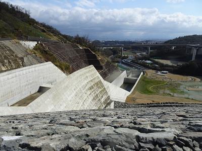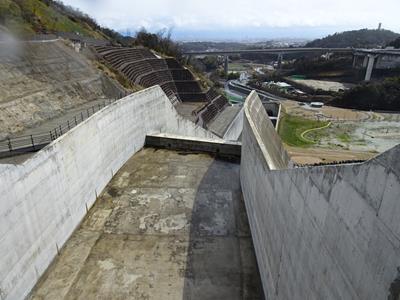 洪水吐を渡る管理橋から見たところです。