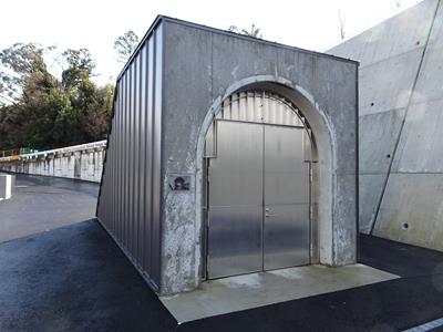 右岸までやってきました。ここは監査廊へへの入り口です。