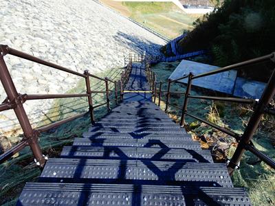 同じルートで堤体直下に降りることにしました。