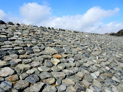 堤体の高さから考えると見えているリップラップはそこまで高くなく