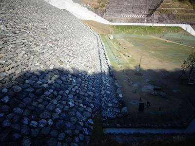 堤体の下の方は埋め立て盛土です。