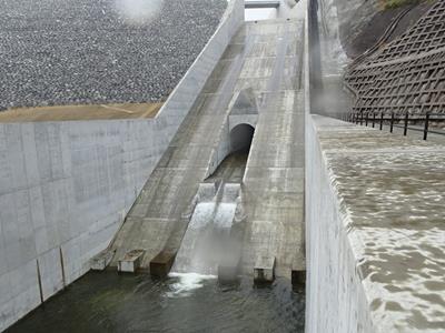 wDNの取材で中に入れていただいたトンネル式常用洪水吐の吐口です。