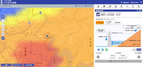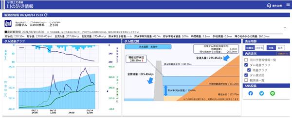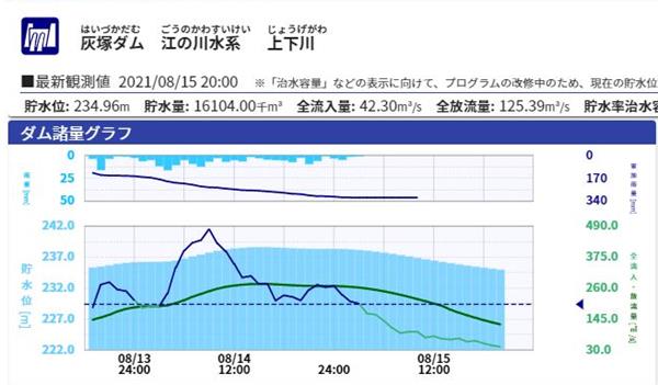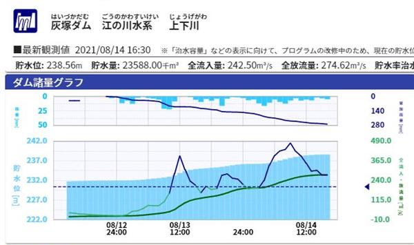 2021年8月12日am07:00過ぎの川の防災情報の灰塚ダムです。