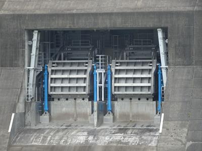 これが灰塚ダムをスターならしめている引張ラジアルゲートです。
