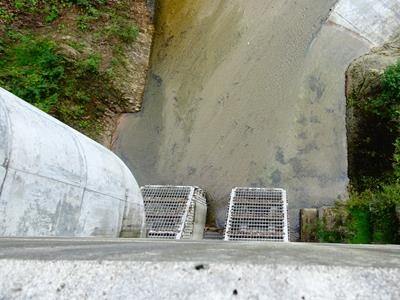 川底がこんな風に見えていて、底部の洪水吐水路は