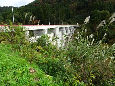 貯水池側は流水型ダムらしい風景です。