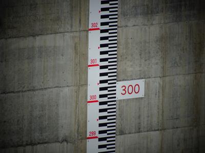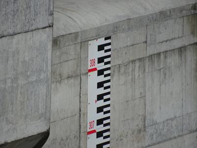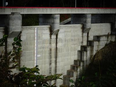 堤体に水位標がついていますのでこれでどのあたりまで溜まったのかを確認します。
