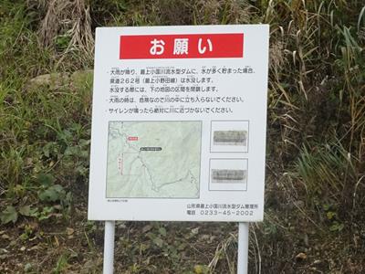 県道262号(最上小野田線)は水没します。