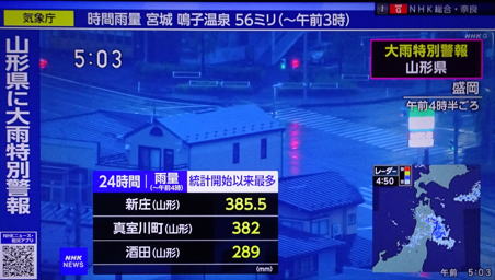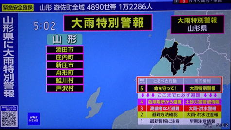 大雨の特別警報が山形県北部、最上川下流域に出ていました。
